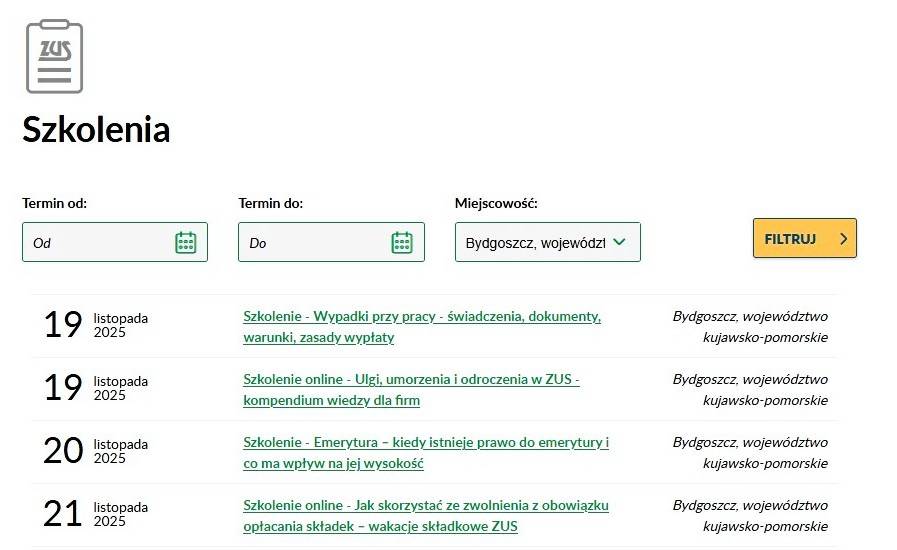 ZUS w Bydgoszczy zaprasza na listopadowe szkolenia stacjonarne