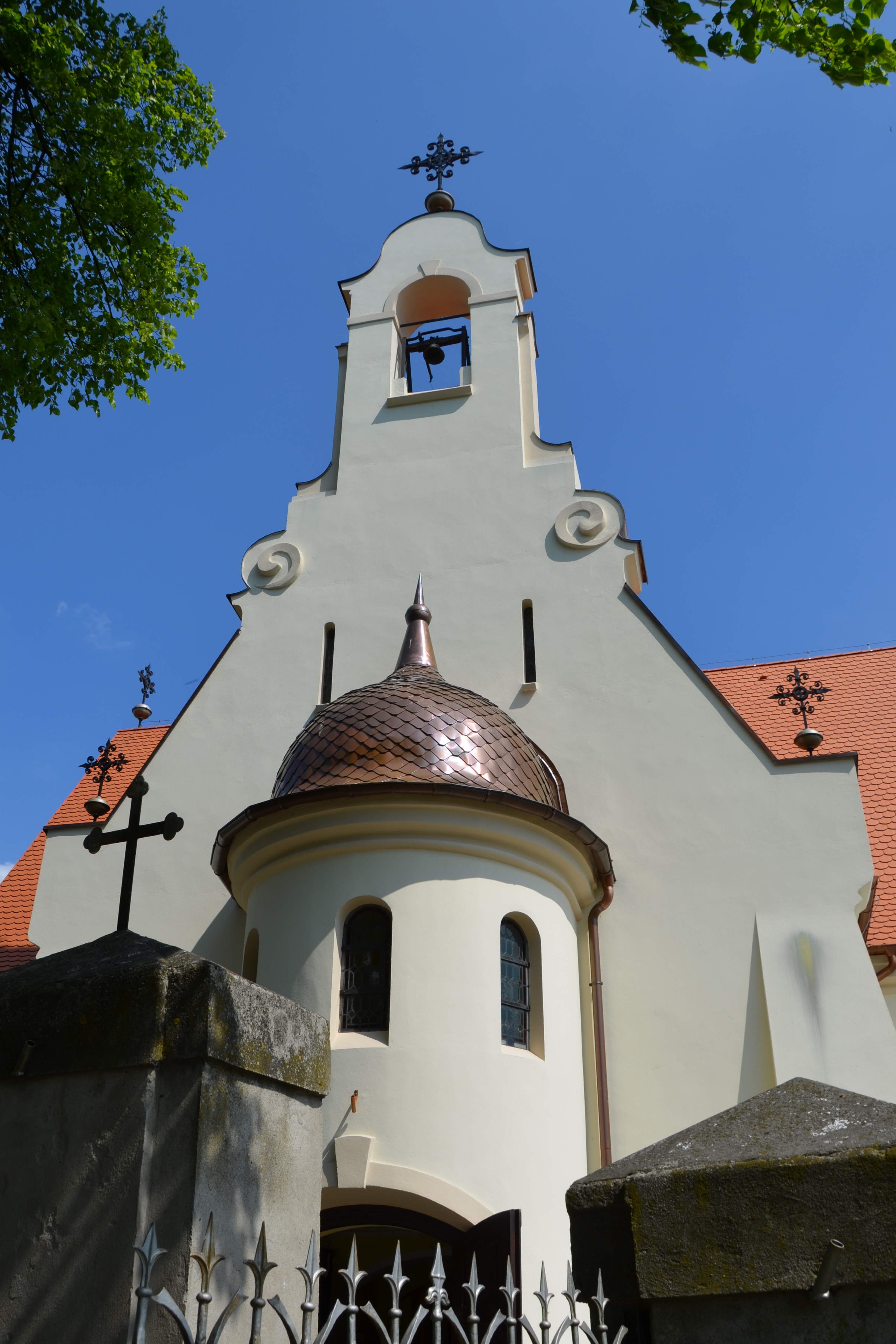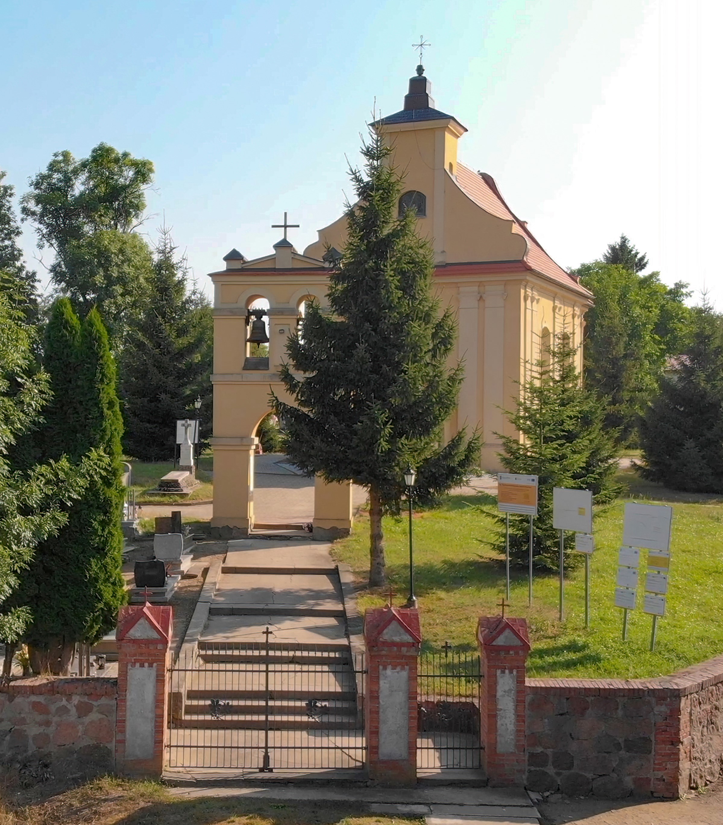 Kościół z lat 1790-91, powiększony i przekształcony w końcu XIX wieku; nawa dwurzędowa zbliżona do kwadratu, część nowsza z elewacją zachodnią półkoliście z barokowym krucyfiksem z XVIII wieku, ołtarz główny z początku XVIII wieku, trójosiowy, chrzcielnica regencyjna z ok. 1740 roku, dwa konfesjonały rokokowo-klasycystyczne.