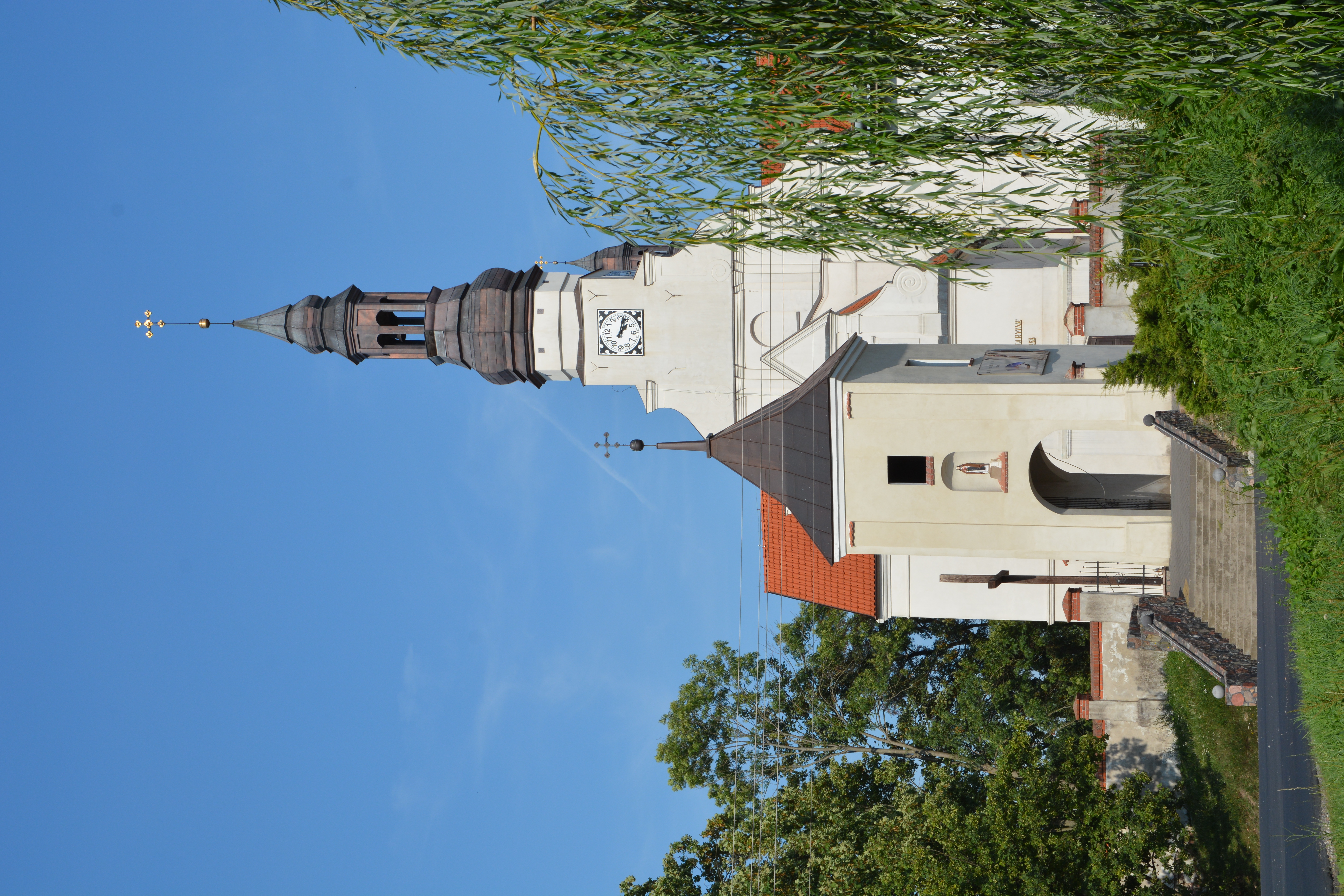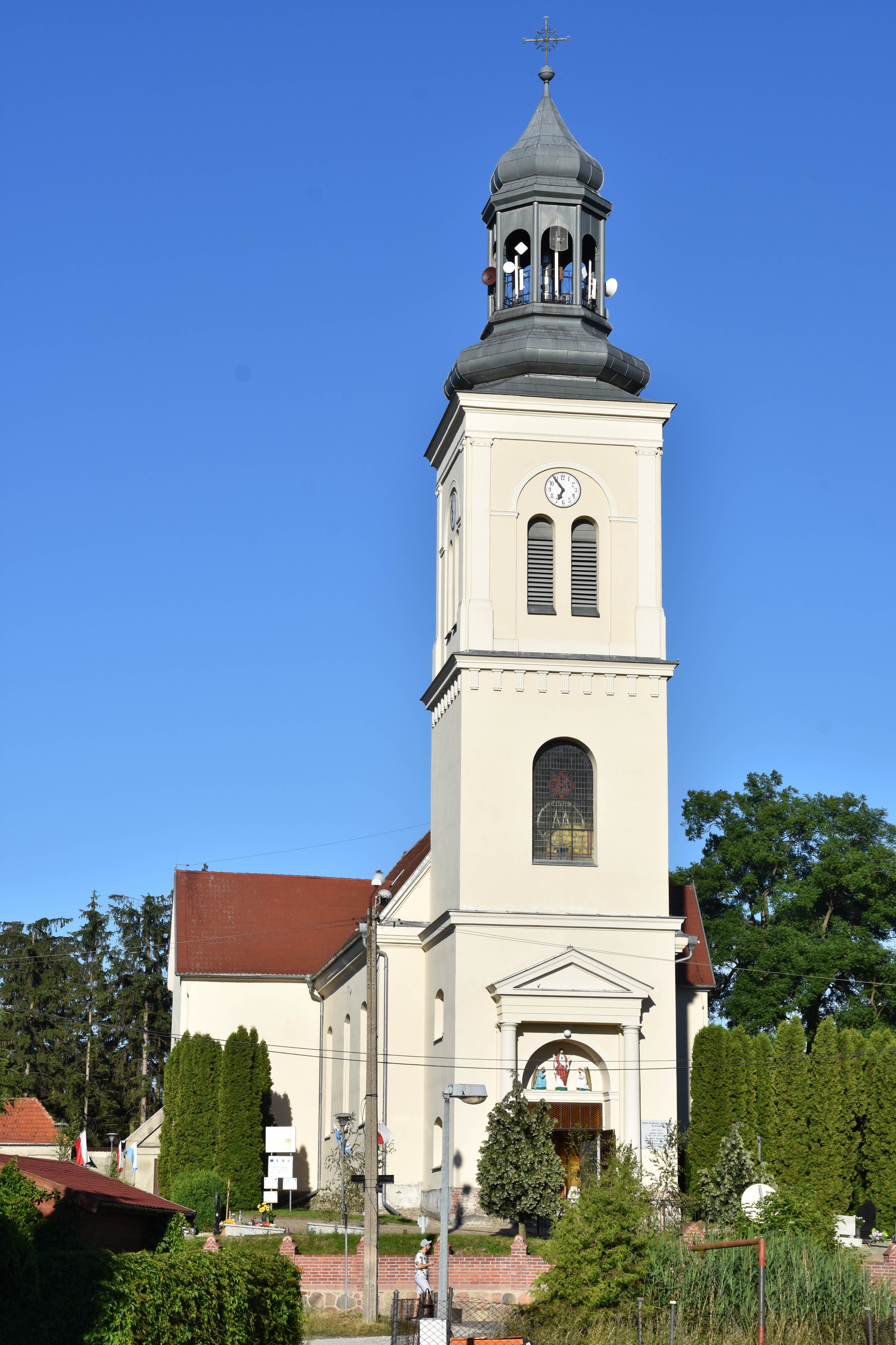 Barokowy, murowany, zbudowany przez Cystersów na niewielkim wzniesieniu w roku 1767, odnowiony gruntownie w roku 1892. Wyposażenie wnętrza rokokowe z okresu budowy, w ołtarzu głównym obrazy z I poł. XIX wieku, w polu środkowym "Przemienienie" wg Rafaela. Dzwonnica klasycystyczna murowana z ok. poł. XIX wieku, w arkadzie tablice upamiętniające bitwę z Krzyżakami z 10.10.1410 roku i ku czci poległych w czasie II wojny światowej. Na cmentarzu przykościelnym grobowce i płyty kamienne z XIX wieku.