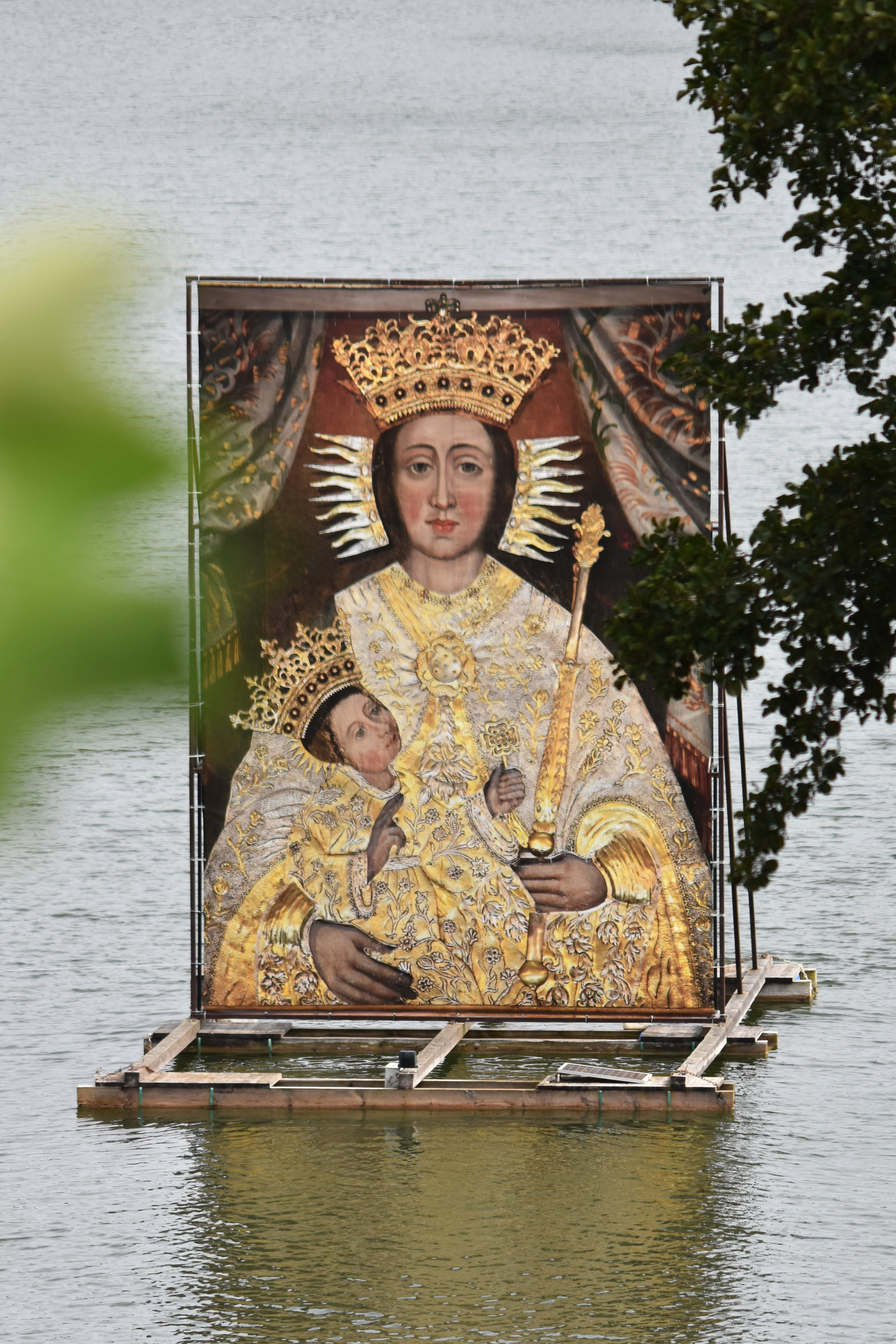 Na tafli jeziora za świątynią pływa powiększona kopia cudownego obrazu.