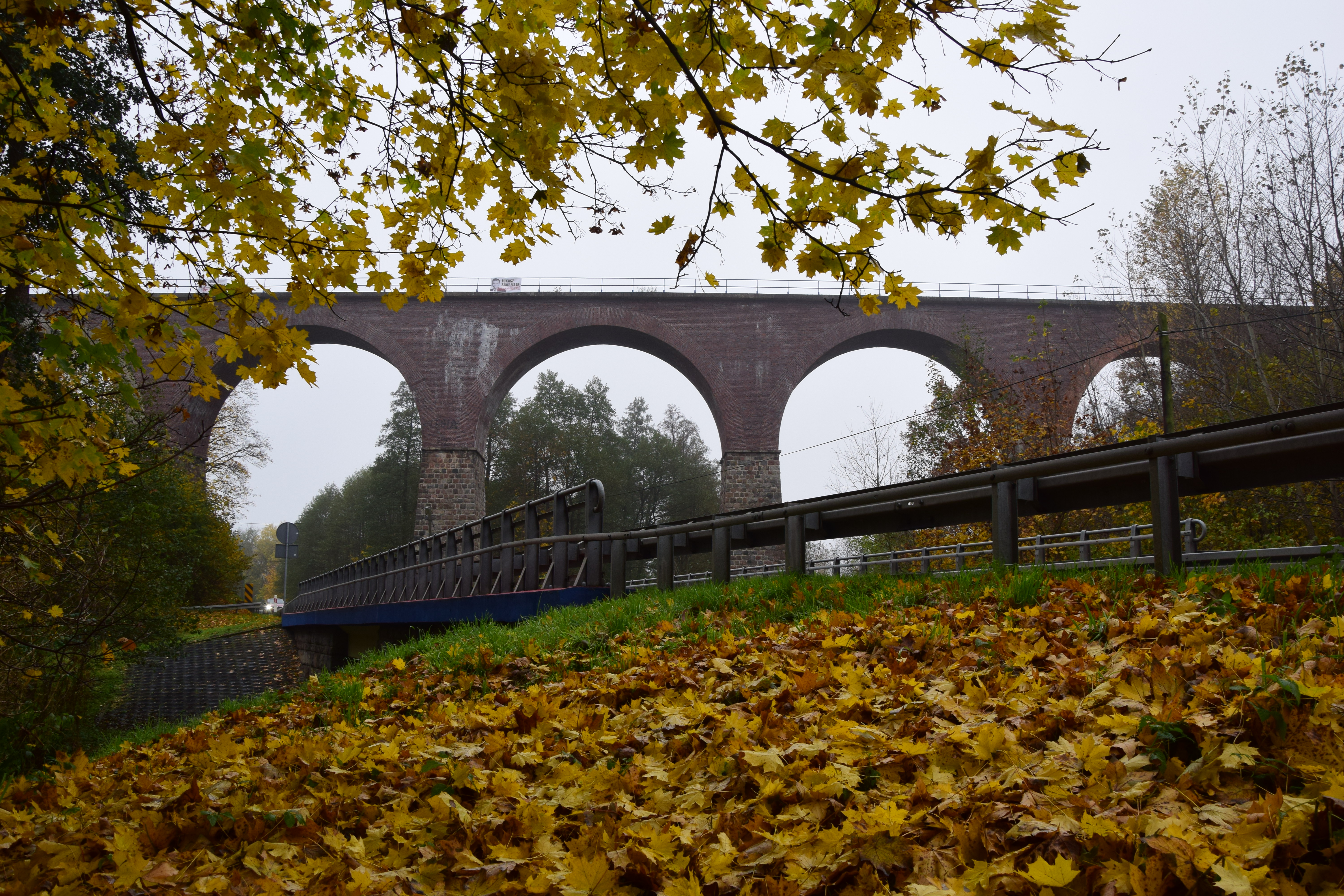 Ceglany wiadukt kolejowy osadzony na kamiennej podbudowie filarów. Szerokość pięciu przęseł wynosi ok. 93 m, natomiast wysokość ok. 25m. Wybudowany przed 1909 r., kiedy to uruchomiono połączenie normalnotorowe z Koronowa w kierunku Tucholi. Most wysadzony w 1939 r. przez Wojsko Polskie.