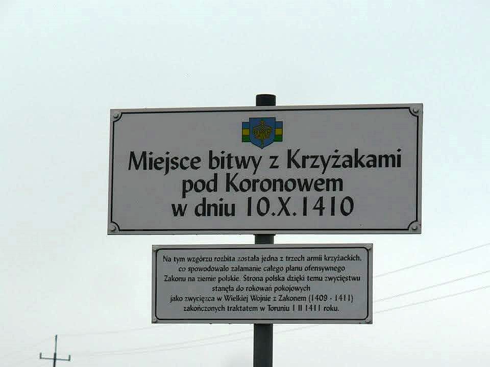 Oznaczenie miejsca w którym 10 X 1410 miała się rozegrać główna część bitwy pod Koronowem. Miejsce określone na podstawie opisu wzgórza wg Jana Długosza. Prowadzone prace archeologiczne przesuwają prawdopodobne miejsce starcia na wzniesienia pomiędzy wsią Wilcze, a Łąsko Wielkie.