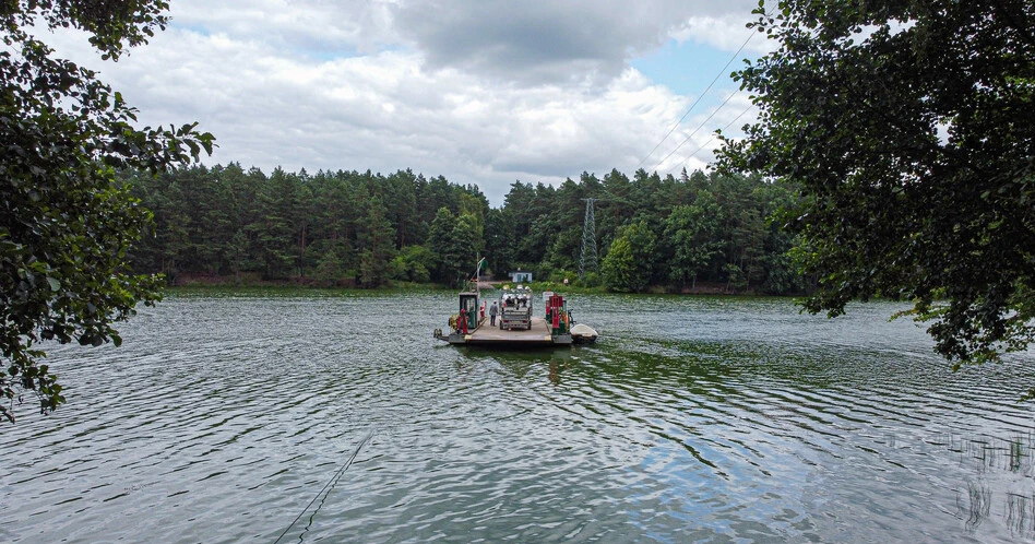 Prom na Zalewie Koronowskim w ciągu drogi powiatowej nr 1030C łączącej Sokole-Kuźnicę z Lubiewem, na pograniczu Powiatu Bydgoskiego i Tucholskiego. Kursuje według harmonogramu w godzinach 10-18, w weekendy od maja do września, a w lipcu i sierpniu codziennie.