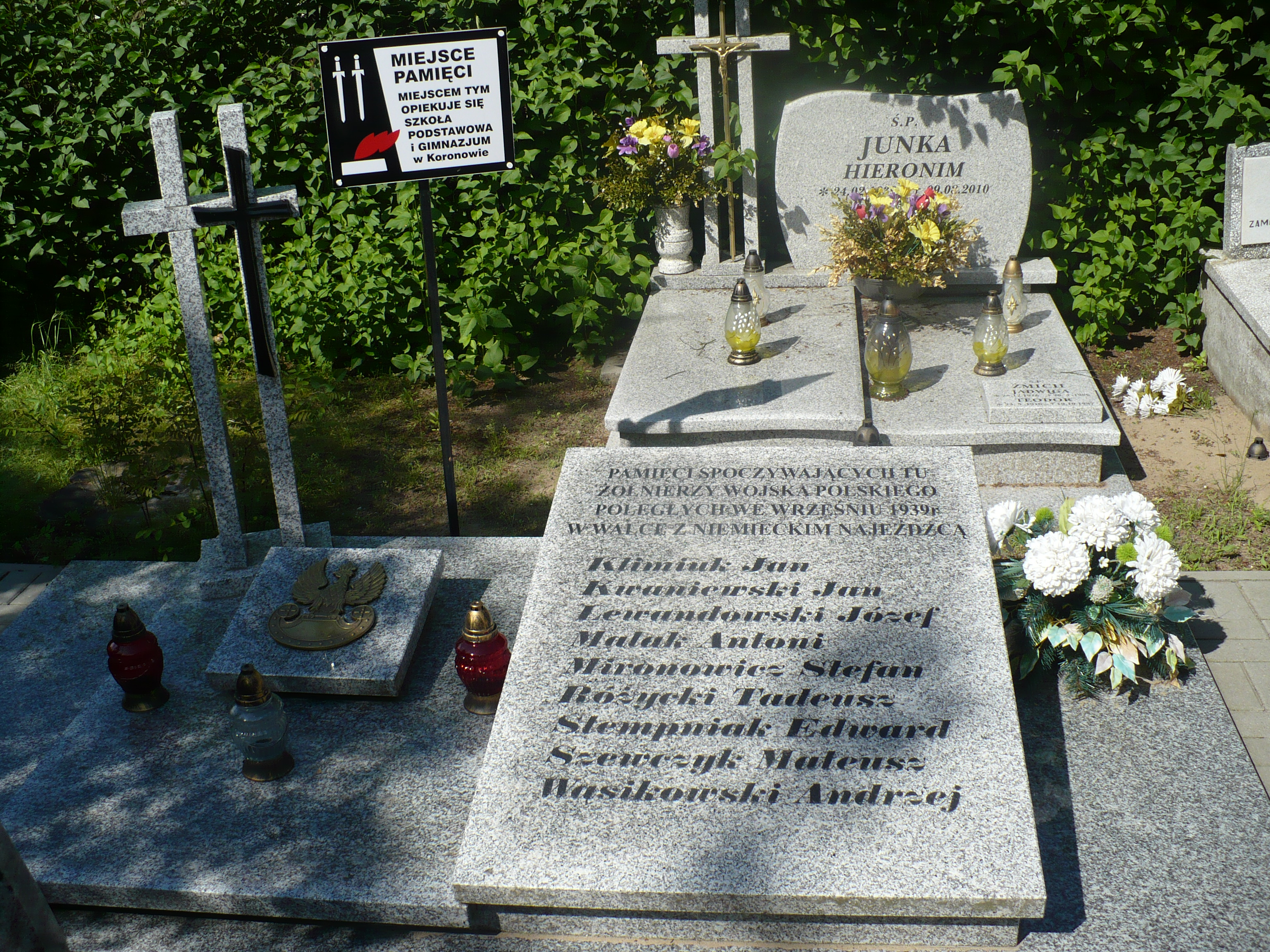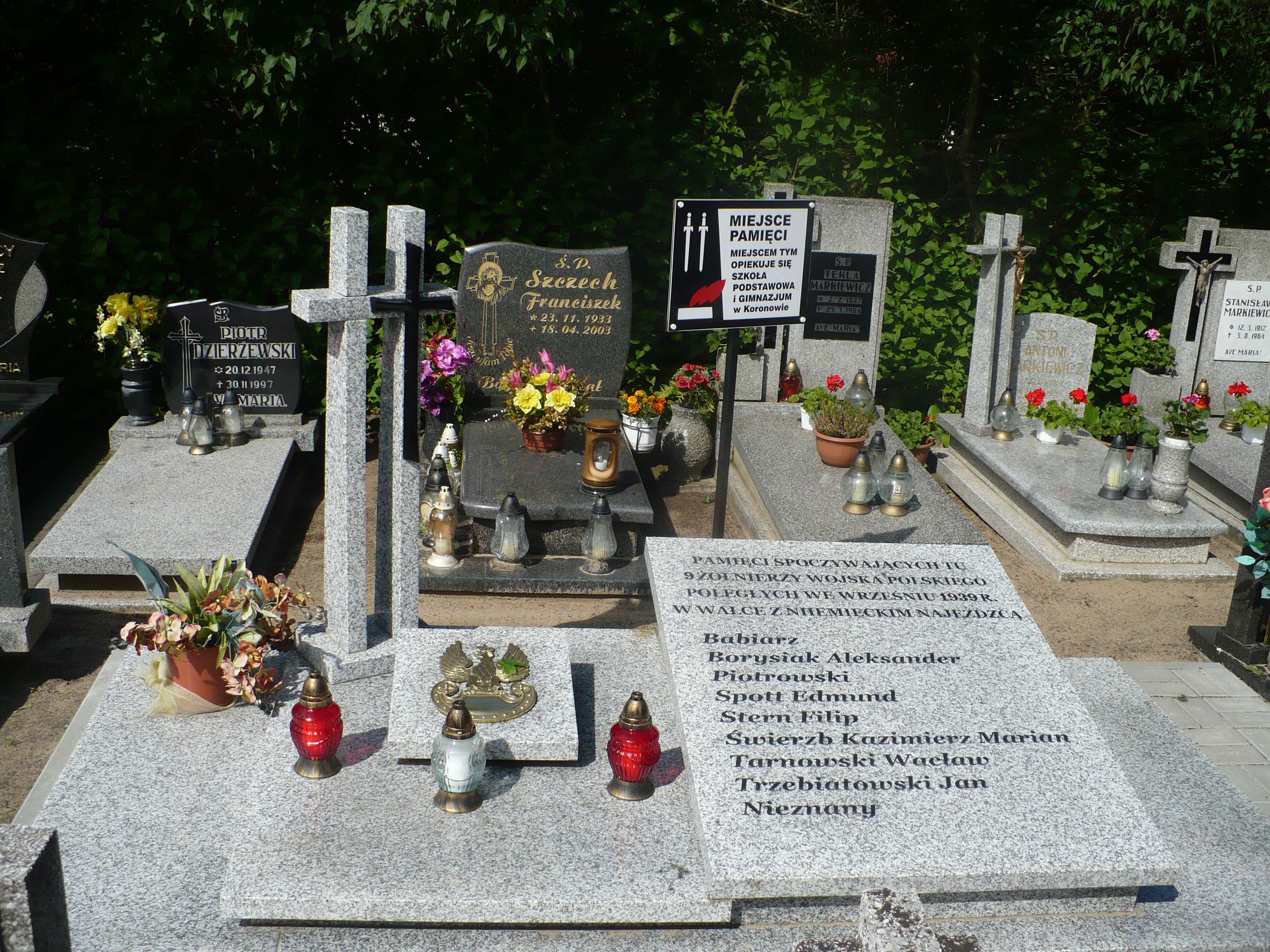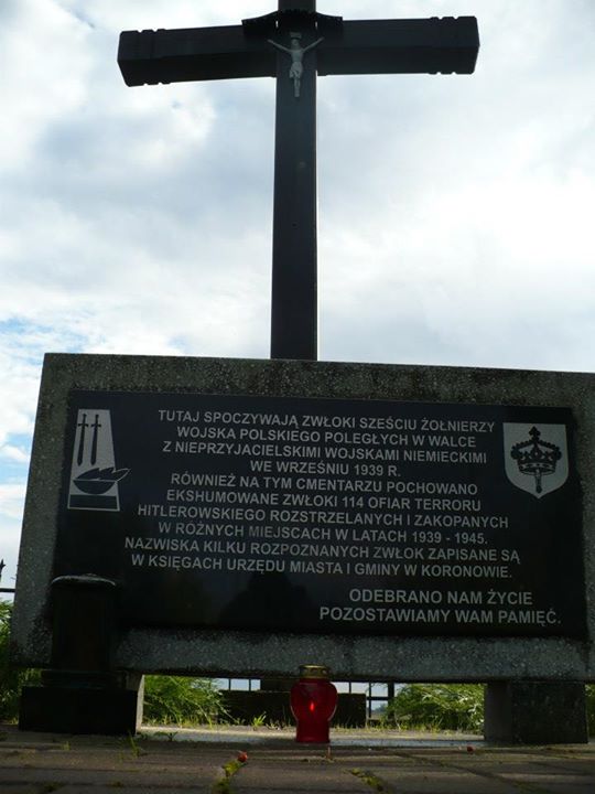 W dniu 1 września 1939 r. pod naporem wojsk niemieckich, oddziały Wojska Polskiego zaczęły się wycofywać z linii jezior Koronowskich. W trakcie prowadzonych zaciętych walk wielu z nich poległo. Część z nich mieszkańcy Koronowa pochowali na cmentarzu parafialnym. W zbiorowej mogile spoczęli żołnierze przeważnie 9 Dywizji Piechoty oraz Batalionu Obrony Narodowej Koronowo: