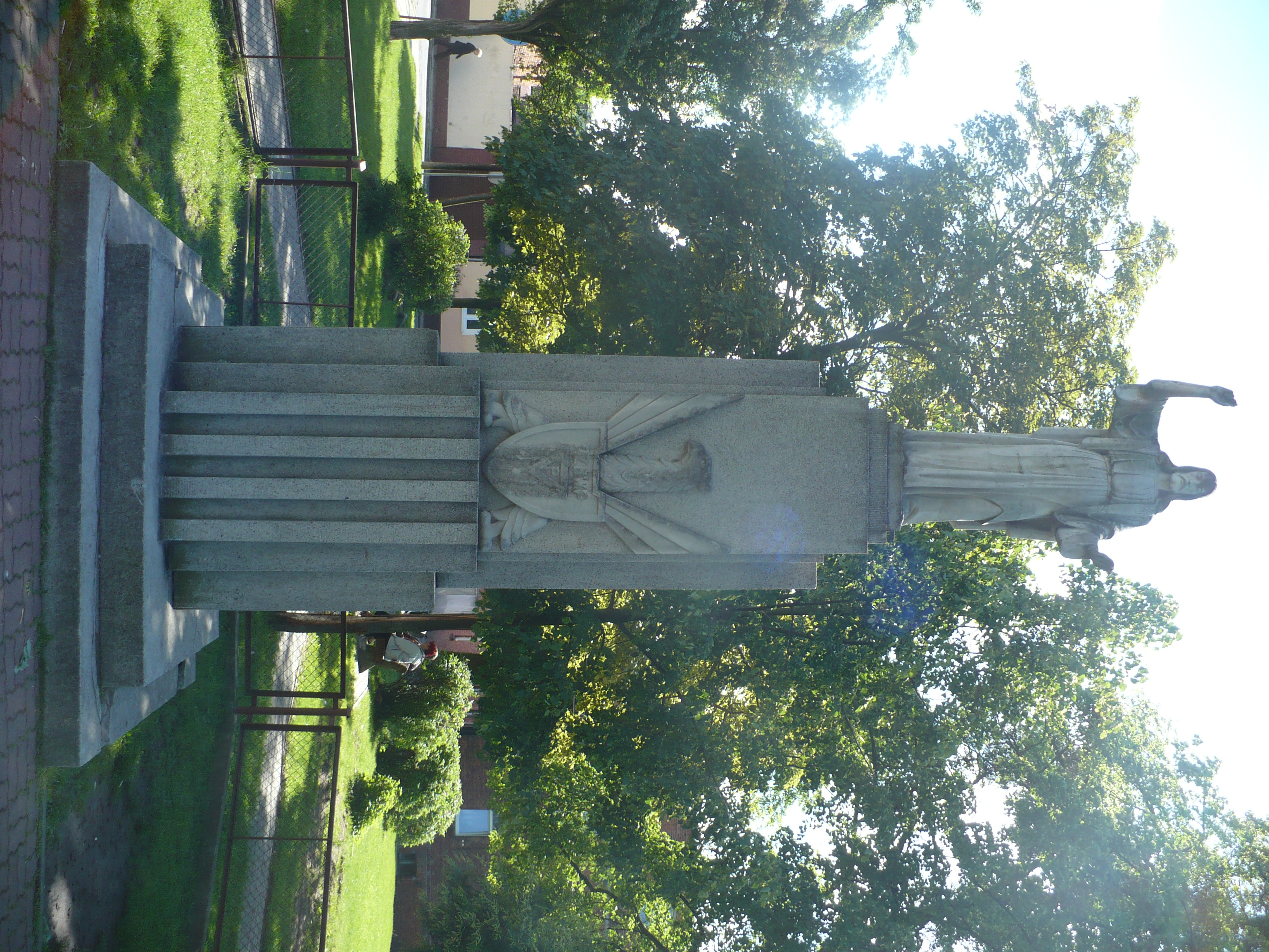 Pomnik "TYM CO ZGINĘLI - CI CO WRÓCILI", tzw. figura Chrystusa. W czasie okupacji niemieckiej w latach 1939 - 1945 wielu mieszkańców Koronowa zostało aresztowanych i wywiezionych do obozów koncentracyjnych, w których większość została zamęczona. Dla uczczenia ich pamięci byli więźniowie obozów koncentracyjnych przy ZBOWiD w Koronowie ufundowali pomnik, który postawiono w 1947 r. Zwieńczony jest figurą Chrystusa Pana, a pod nią stylizowany orzeł, odznaka byłego Związku Więźniów Politycznych Obozów Koncentracyjnych oraz herb Koronowa. Ten pomnik jest symbolicznym, Koronowskim Grobem Nieznanego Żołnierza.