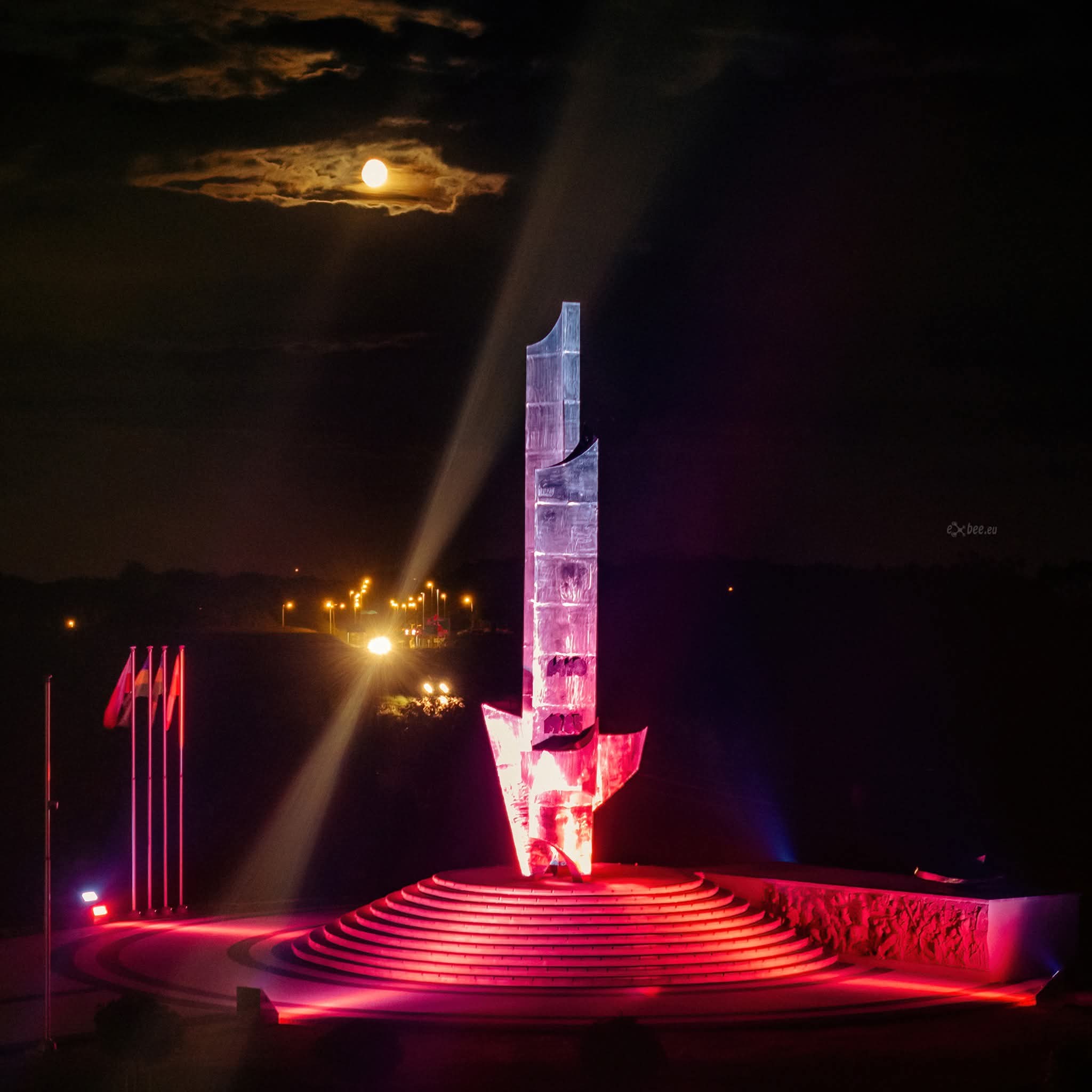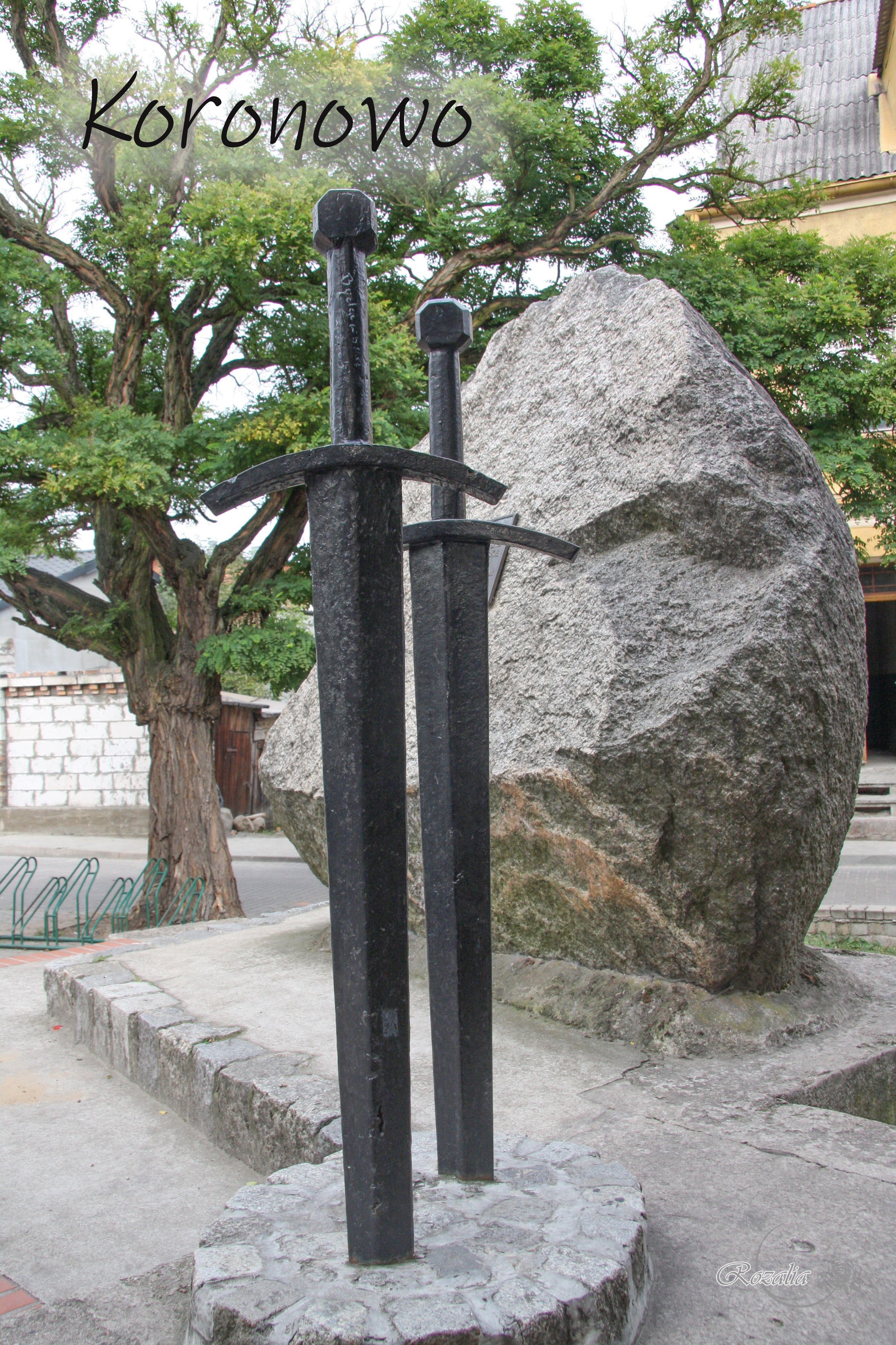 Pomnik ku czci zwycięskiej bitwy z Krzyżakami pod Grunwaldem i Koronowem. Odsłonięty w 1985r. zaprojektowany przez artystę rzeźbiarza Lecha Kasprzykowskiego, a wykonany pracownicy fabryki "SPOMASZ" w Żninie oraz P.P. Sztuk Plastycznych oddział w Bydgoszczy. Pomnik ma przedstawiać dwa topory (przecinające się). Od strony północnej znajduje się płaskorzeźba, która jest pierwszym przedstawieniem bitwy pod Koronowem. Pierwotnie pomnik miał stanąć na terenie Koła Łowieckiego "Głusza" w Łąsku Wielkim, gdzie miał zostać usypany kopiec w 1960 r.