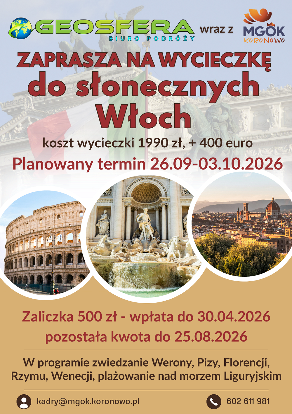 Zapraszamy na wycieczkę do słonecznych Włoch!
