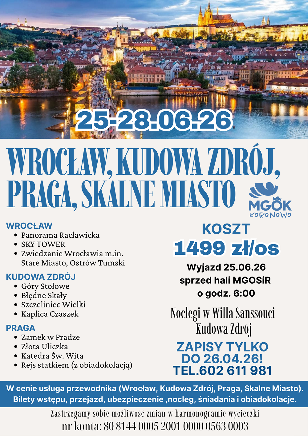 Zapisy tylko do 26.04.2026, tel. 602611981